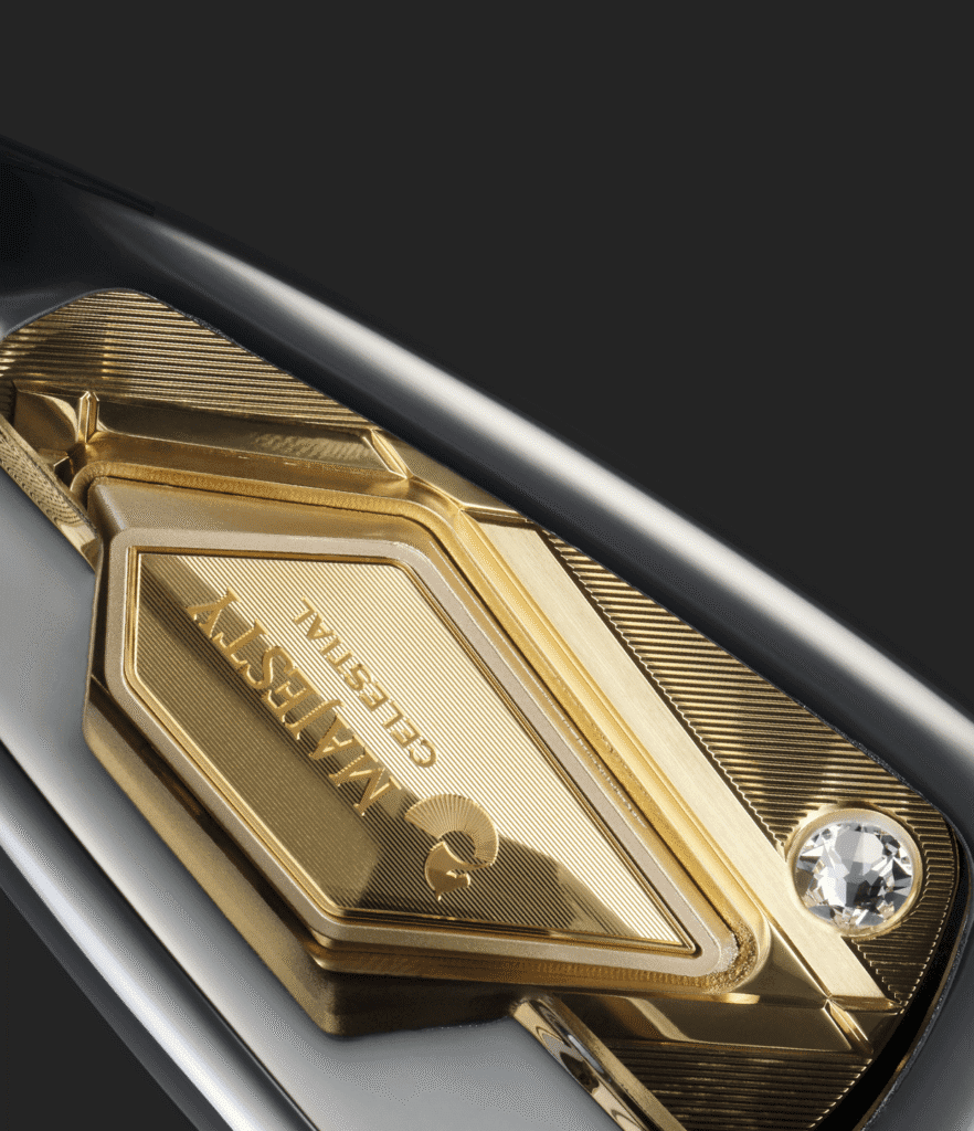 Majesty Prestigio 12 là bộ gậy sang trọng hàng đầu của Majesty, kết hợp hài hòa giữa chế tác thủ công tinh xảo và công nghệ tối tân. Các chi tiết được điêu khắc thủ công hoạ tiết Phượng Hoàng – biểu tượng hoàng gia Nhật Bản, thể hiện vẻ đẹp quyền uy và may mắn. Mặt gậy ứng dụng công nghệ 3D Energize, tăng cường COR và mở rộng vùng sweet spot, còn phần đế gậy tích hợp vonfram nặng, giúp hạ thấp trọng tâm, tạo quỹ đạo cao, ổn định và khoảng cách vượt trội